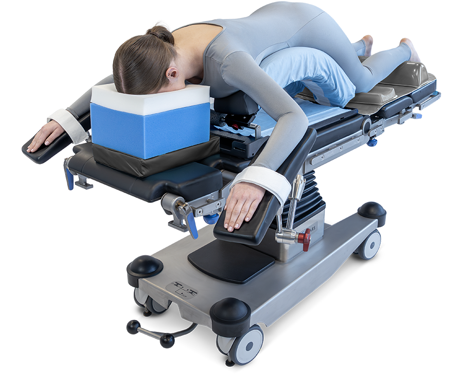 Mit Carbonverbundstoffen und hochschlagfesten Kunststoffen bietet der Wilson Rahmen uneingeschränkte Röntgentransparenz und C-Bogen-Integration.